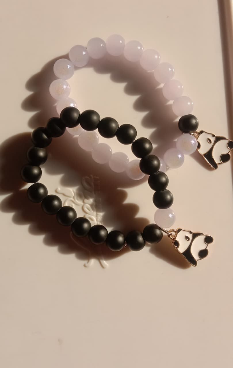 marble beaded pair bracelet with panda charm